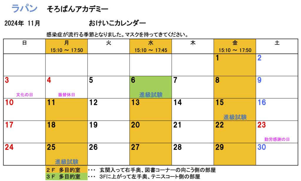 11月のおけいこカレンダー