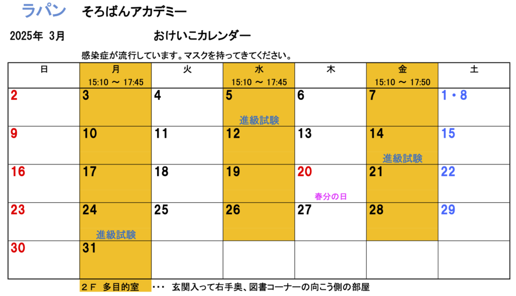 3月のおけいこカレンダー